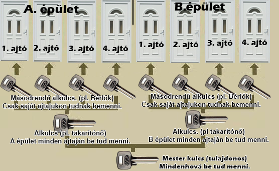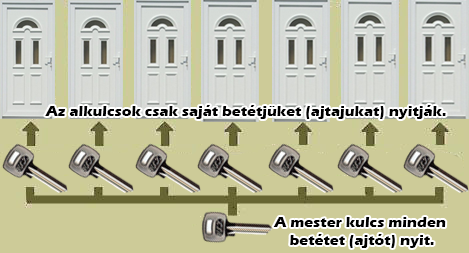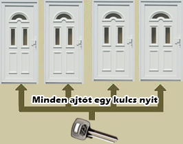 Egy kulcs nyit minden zárbetétet(ajtót).